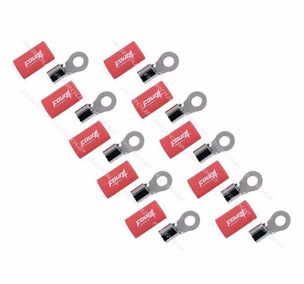 4Connect ringterminaler har krympslang av god kvalitet som isolator istället för vanliga gummi- eller plasthylsor. Krympslang skyddar anslutningen mycket bättre mot oxidation än lösa plast- eller gummihylsor. Många tillverkare gör sina terminaler av mässing som har mer motstånd än koppar eftersom mässing det är mycket billigare. Med högströmsanslutningar skulle det vara klokt att använda riktig koppar för att säkerställa bästa anslutning och konduktivitet. Alla 4Connect-terminaler som är för 20 mmq eller större kablar är gjorda av 100% koppar. Kontakterna är rodiumpläterade för att säkra anslutningen i flera år. Detta paket innehåller 10 st röda kontakter som passar till M8 bult och tar 20 mm2 kabel.