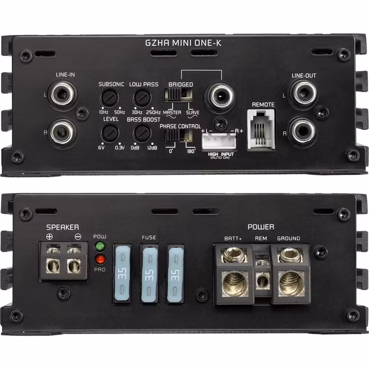 1-channel subwoofer amplifier with high efficient class D circuit, integrated activ crossover and compact dimensions